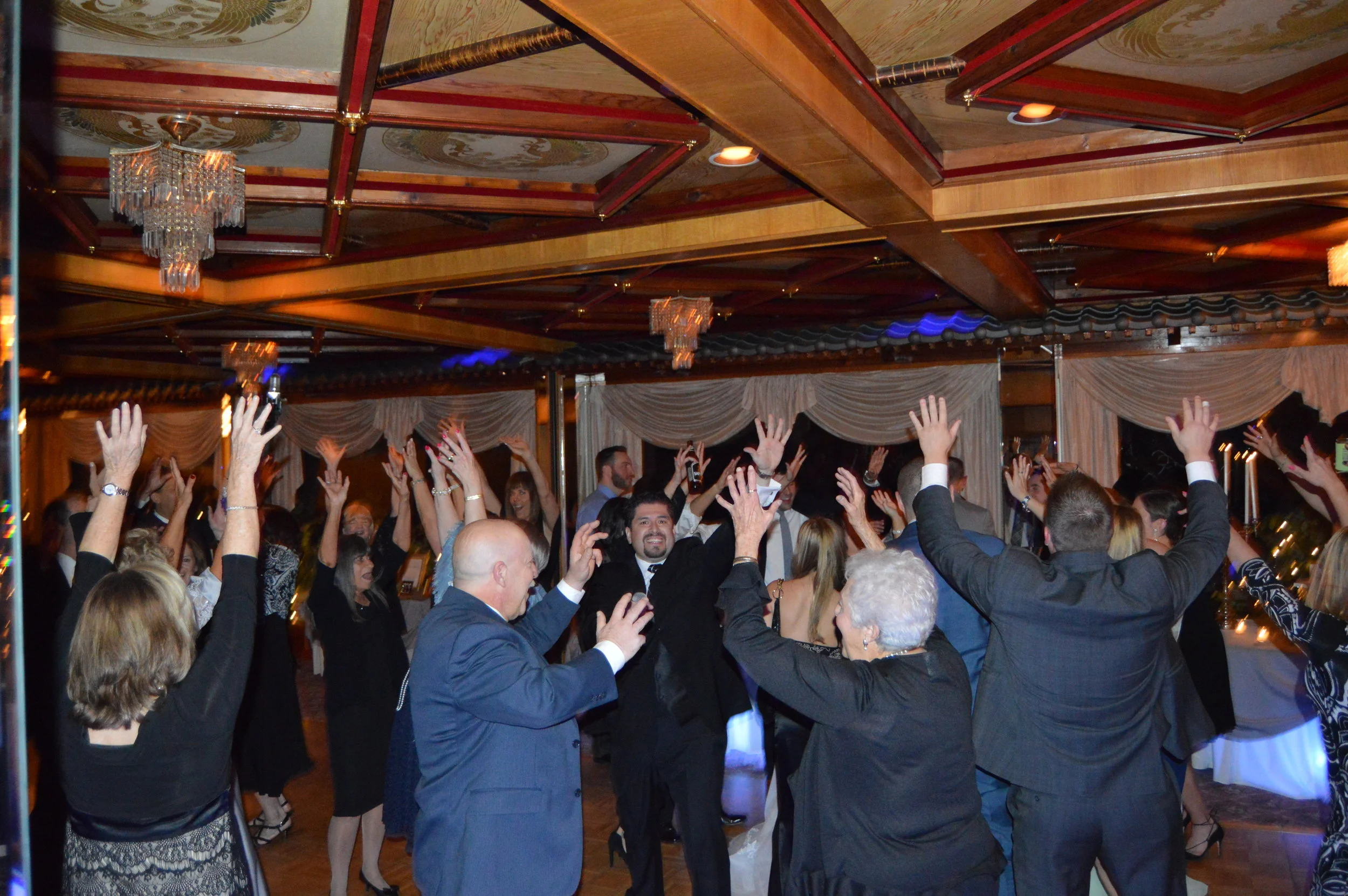 What a way to start 2018! Rachel and Dan's wedding reception was on January 26, 2018. Our professional team, MC Steve and DJ Robert provided the music for the cocktail hour and reception. They selected our elegant Superior Wedding reception entertainment at the beautiful Park Savoy in Florham Park. MC Steve helped organize and program the reception timelines and introductions. Rachel and Dan were fun to work with and made it easy to exceed their expectations. Our satellite DJ system provided the music for cocktail hour and we provided our Bilingual MC, DJ, LED Booth Lights for the Reception. MC Steve interacted with their friends and family throughout the dance floor while the DJ Robert kept the party music going, taking requests and mixing all the dance hits. It was such a high-energy party, that Dan ended up in the air a couple of times. It was a non-stop fun from beginning to end. Thank you for choosing our services. #WeddingMC #WeddingDJ #SGProductions